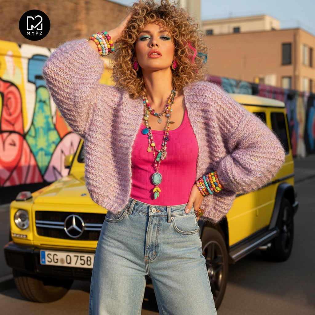 MYPZ Short Chunky Mohair Cardigan Confetti Nights